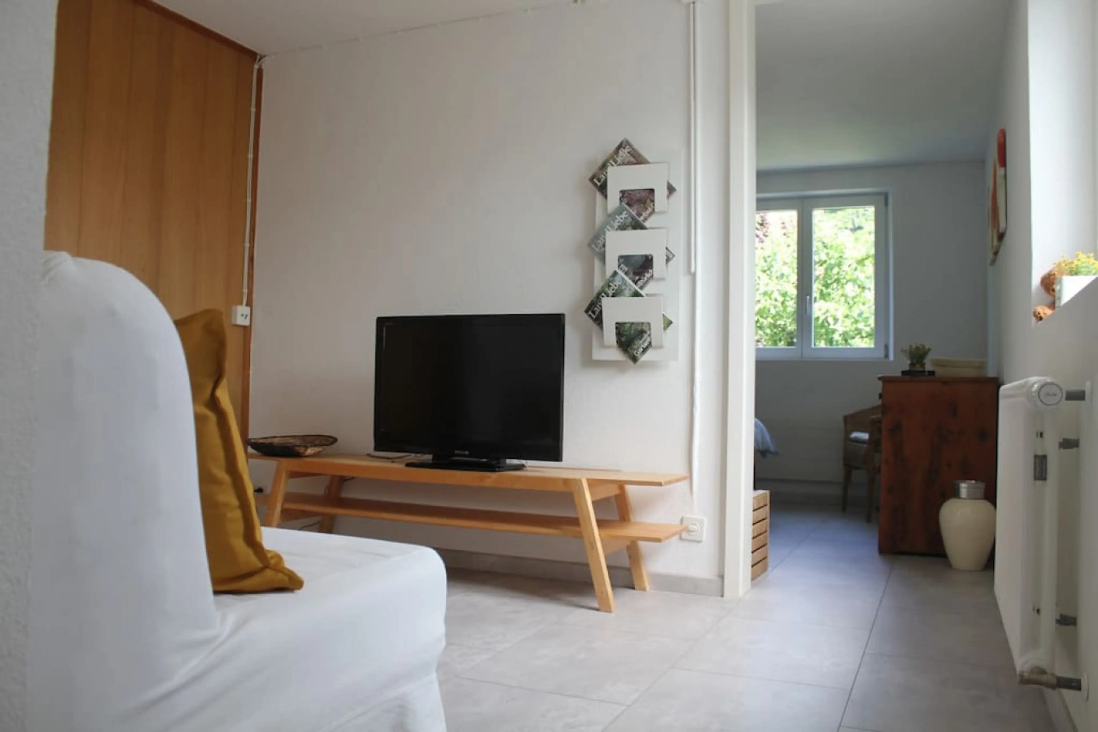 Positive: The apartment is roomy, with separate living room and bedroom. We liked having a kitchen, especially the Nespresso machine. The floors are not carpeted. The tv is truly smart. The neighborhood is quiet. The location is reasonably convenient to the lake and public transportation, as well as to shops. We appreciated being provided the Thunersee Panorama Card.